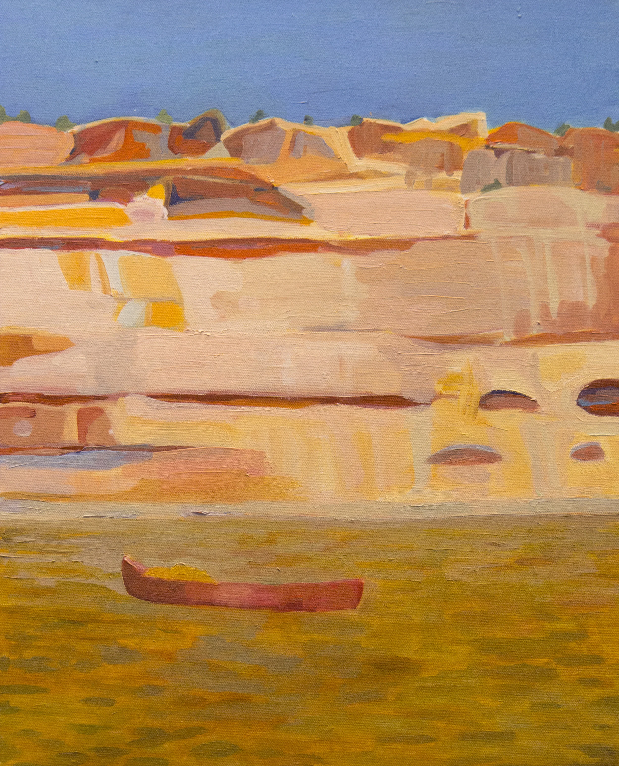 When I went to make these paintings, from photographs, sketches and memories…the empty red canoe kept reappearing. At first I assumed it came from my frustration with the figure, the depiction. And then I realized it had nothing to do with that and everything to do with who I was as I made these paintings.